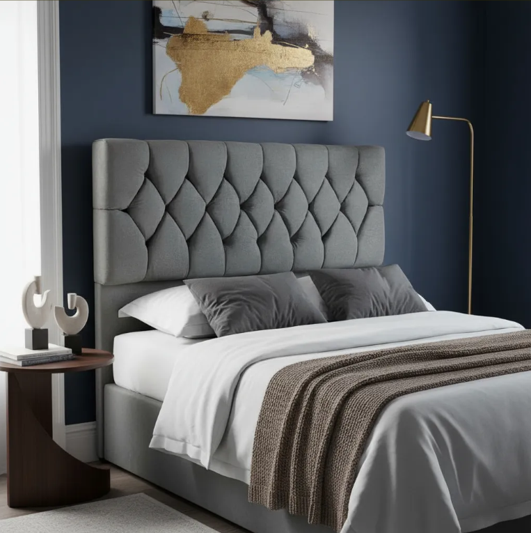 Cabeceira Capitonê Com Pés Para Cama Box Padrão 1,38 Cm - Cinza