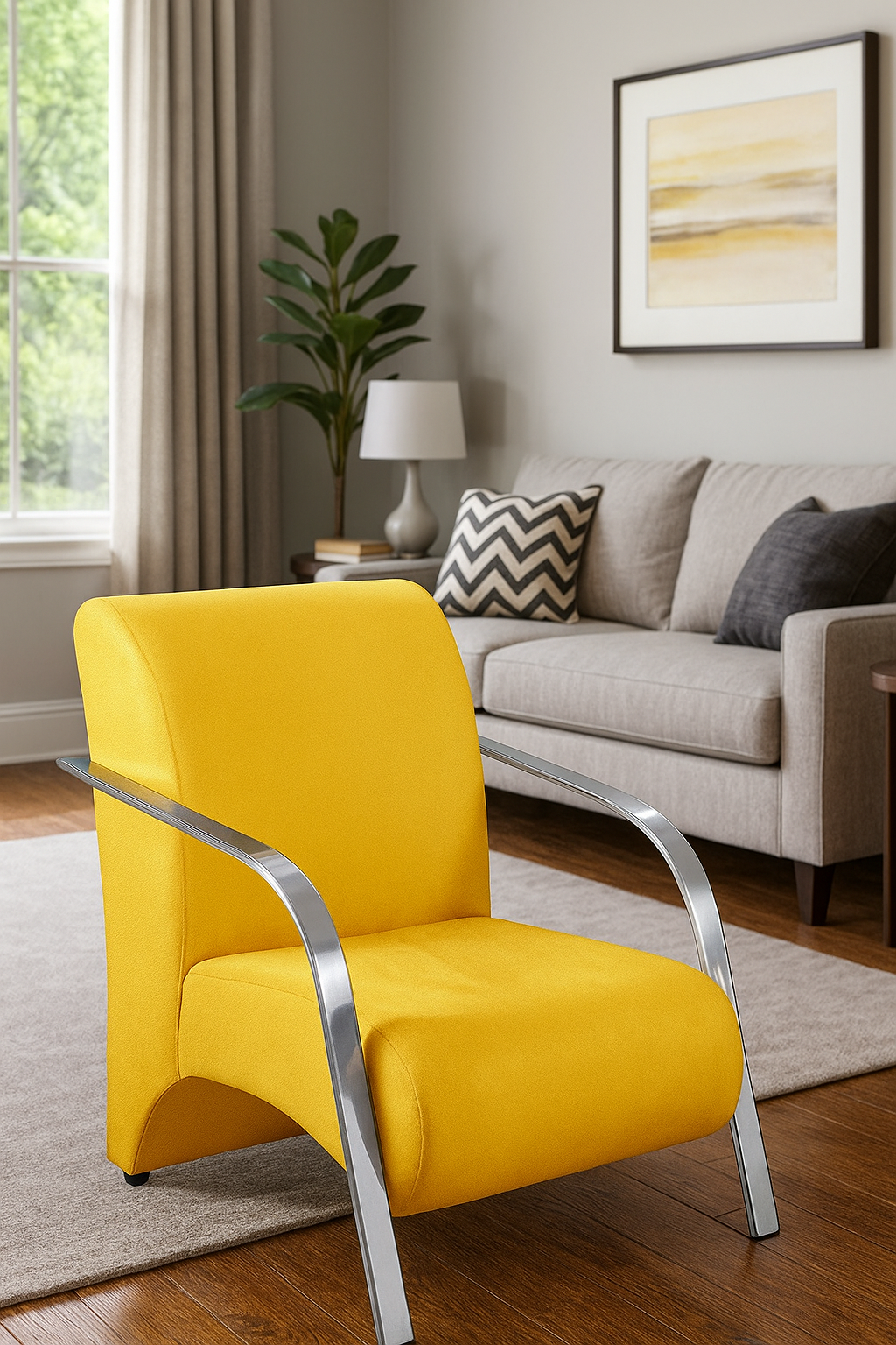Poltrona Decorativa Com Braços em Alumínio Para Sala, Recepção e Escritórios - Amarelo