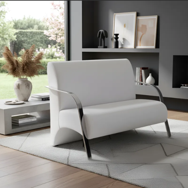 Poltrona Namoradeira 2 Lugares Com Braços em Alumínio Para Sala, Recepção e Escritórios - Branco Corino