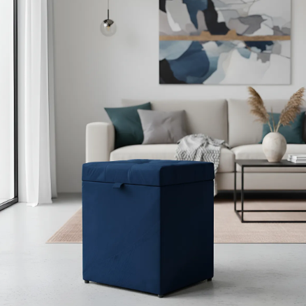 Puff Baú Estofado Quadrado Mari 36cm - Azul Marinho