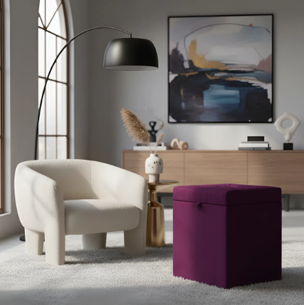Puff Baú Estofado Quadrado Mari 36cm - Roxo