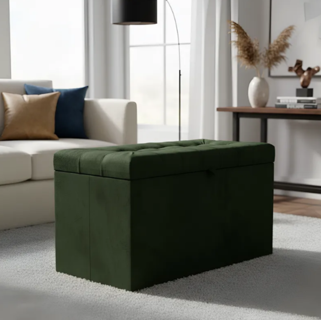 Puff Baú Retangular Estofado Com Pistão á Gás Para Sala, Quarto e recepção - Verde Musgo