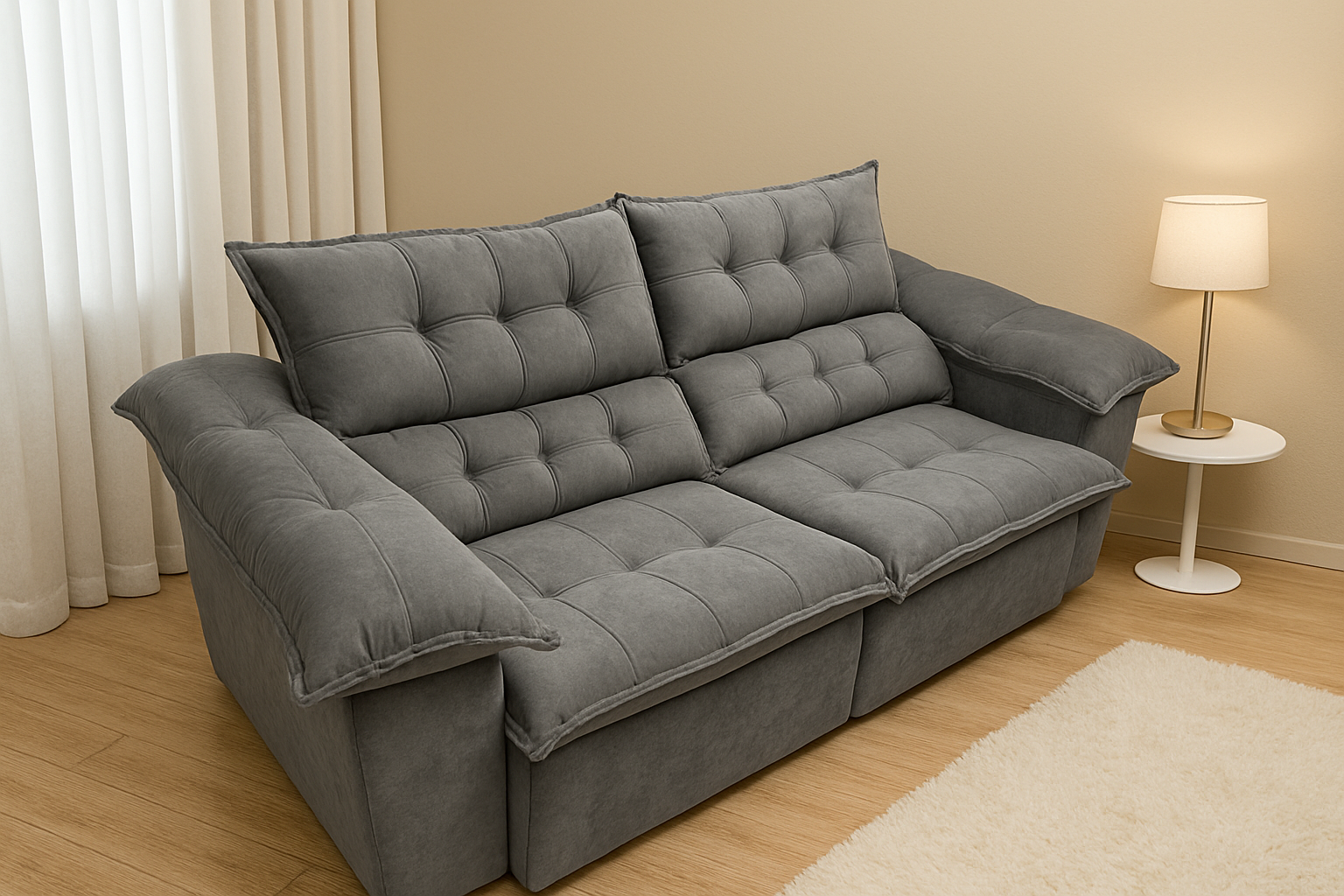 O Sofá Londres Retrátil é a escolha ideal para quem busca conforto, funcionalidade e elegância em um único móvel. Com design moderno e acabamento de alto padrão, ele se adapta perfeitamente a ambientes compactos sem abrir mão do conforto.