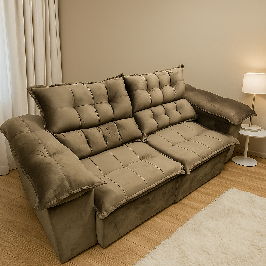 O Sofá Londres Retrátil é a escolha ideal para quem busca conforto, funcionalidade e elegância em um único móvel. Com design moderno e acabamento de alto padrão, ele se adapta perfeitamente a ambientes compactos sem abrir mão do conforto.